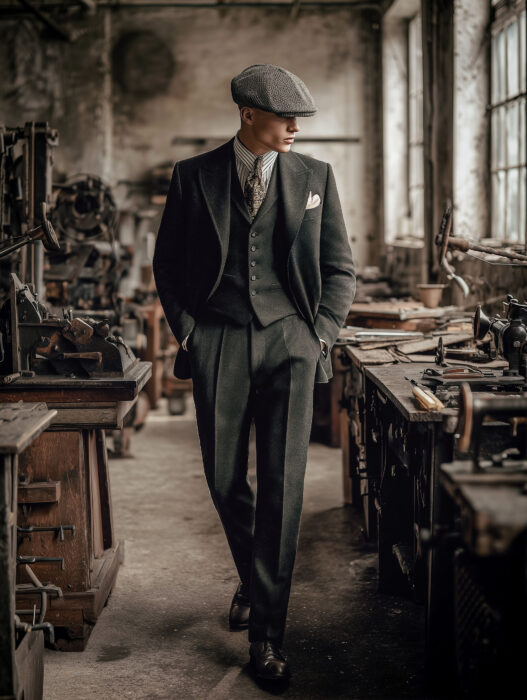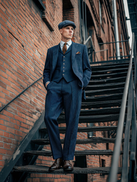 Inspiré des silhouettes du début du XXe siècle, ce style joue sur les gilets, les matières profondes et les accessoires pour créer une allure charismatique et cinématographique.