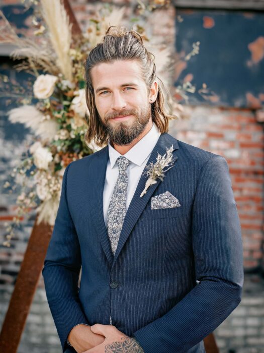 Classique et polyvalent, le costume deux pièces est idéal pour un mariage élégant et épuré. Il met en valeur la coupe et les matières sans nécessiter d’accessoires supplémentaires.