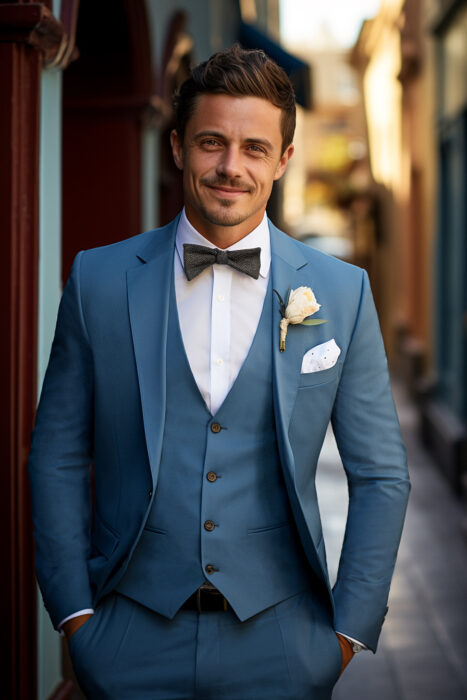 Nos costumes de mariage en bleu sont bien plus que des vêtements, ce sont des créations sur-mesure conçues pour vous mettre en valeur et pour refléter votre personnalité unique. Lorsque vous choisissez un costume de mariage chez Chris von Martial, vous choisissez une expérience sur mesure. Nous comprenons que votre mariage est une étape cruciale de votre vie, et nous sommes honorés de faire partie de cette aventure avec vous. Nous croyons en la personnalisation, en la créativité et en l’authenticité. Chaque costume que nous créons est une œuvre unique, conçue pour vous.